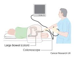 about the thickness of little finger, which has a camera and light at one end. It is passed through the anus( back passage) and carefully moved around the large bowel by a specially trained doctor.